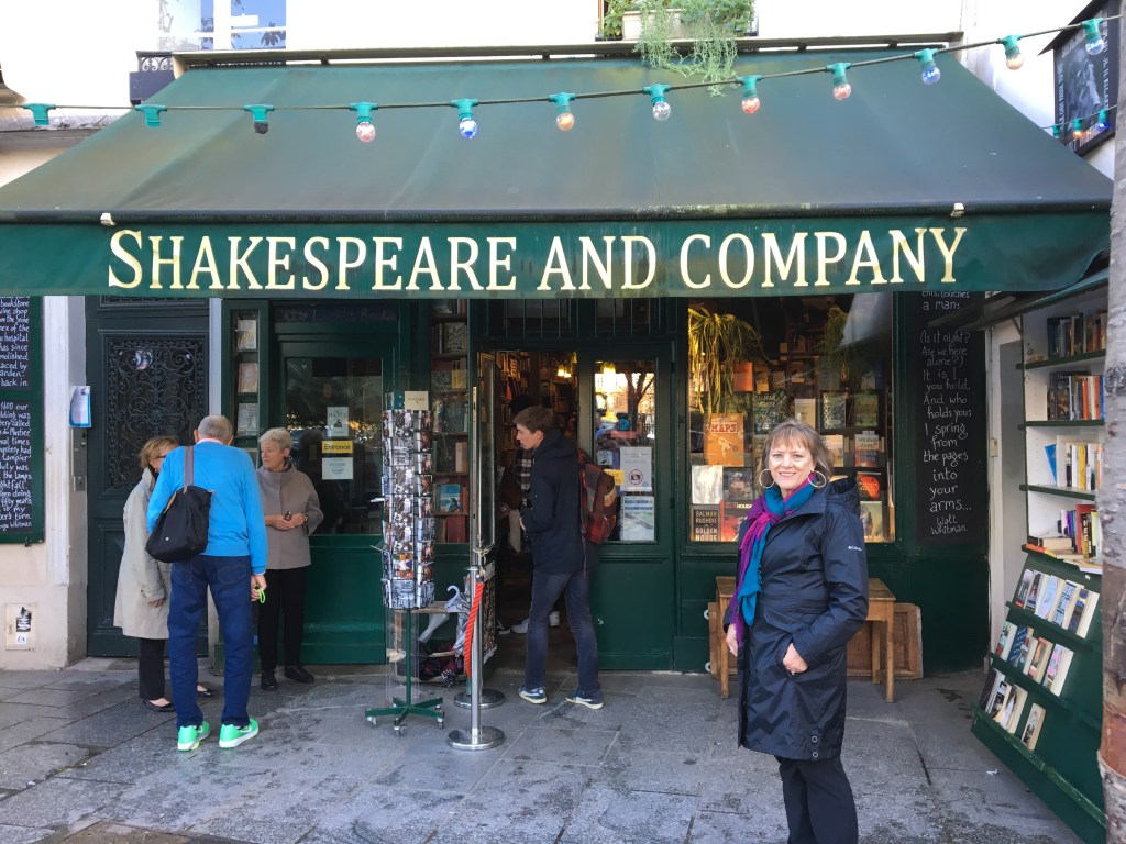 After the quiet reverence of the cathedral we walked a short distance to a bookstore on my bucket list: Shakespeare and Company. I was intrigued and disappointed with the small one-and-a-half story building with very low ceilings. After observing their reading room where the academics and writers had lively conversations, I stood in line at the checkout for the one souvenir I really wanted: a tee shirt with their bookstore logo.