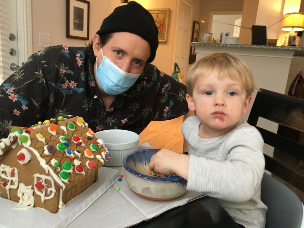 Baker loves his family and that includes his Uncle Ross. Baker just calls him “Uncle”. Last Saturday I had Uncle come over to help make a gingerbread house. It was so tender to see his attachment to Ross. After they finished the gingerbread house, they sat on the floor in the playroom and Baker showed Uncle his cars and rocks. He would stop and go over to Ross and say, “Give me a hug, Uncle.”