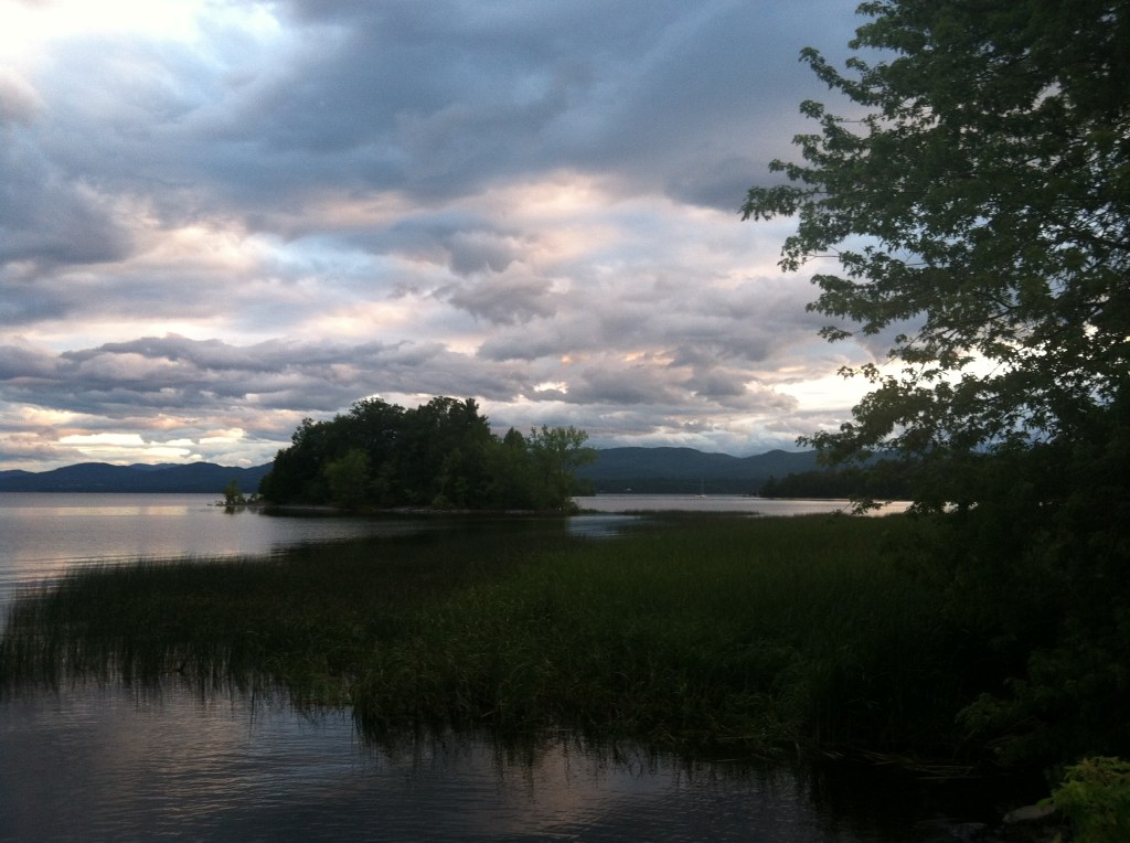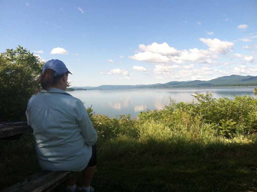 This week I’ve been working on the next chapter of my sequel memoir. I picked up on my story in the summer of 2015. I was mid-way in the Life Coaching class that I was taking with Linda Bark and the Wisdom of the Whole Academy. That July, I traveled by Amtrak on my solo journey stopping first in NYC where I visited with my younger son, Ross, then continued on by train to White River Junction, New Hampshire. There I stayed a few nights in the Hotel Coolidge– a historic train hotel. Then, I rented a car and drove into Vermont and stayed for my next three nights at Button Bay State Park on the shore of Lake Champlain. This picture is one made in the early morning hours. Now, I wonder what I was thinking as I looked out onto that glass-like body of water with the Adirondack mountains of New York in the distance.