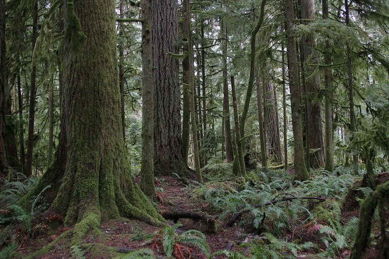 The day of my hike up Mt Constitution, I left the hostel early to take the ferry from Friday Harbor to Orcas Island. The website had said there would be trail maps at the base of the mountain that was part of Moran State Park. But when the island shuttle bus pulled away, all that greeted me was an empty bin of trail maps; no park staff, no posted map of the trail, no human in sight save the people swimming at the glacier lake across the road. Then it occurred to me that, unlike me, most people would have a car and just zip to the top of the mountain instead of making that slow climb.
