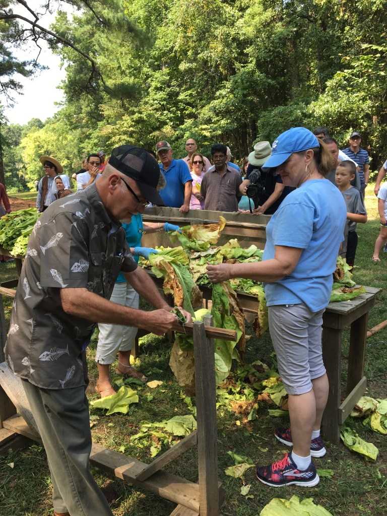 Demonstration of handing tobacco September 2017 Duke Homestead Harvest and Hornworm Festival