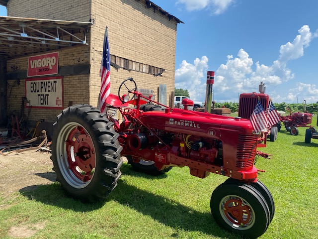 When I arrived with Brooks and my two grandsons, Baker and Parks, the grounds where filled with rows of shiny Farmall tractors that were built by IH between 1924 and 1973. One area was roped off for the Cub cadets–and cones were placed for the kids and adults to ride and race. There were displays of IH memorabilia which were of keen interest to the members–some of whom had traveled from out of state, one in an RV that parked beside the pond. Mostly men, were gathered around in the shop and underneath tents enjoying the fellowship of a shared passion, a way of life that is remembered and carried forward.