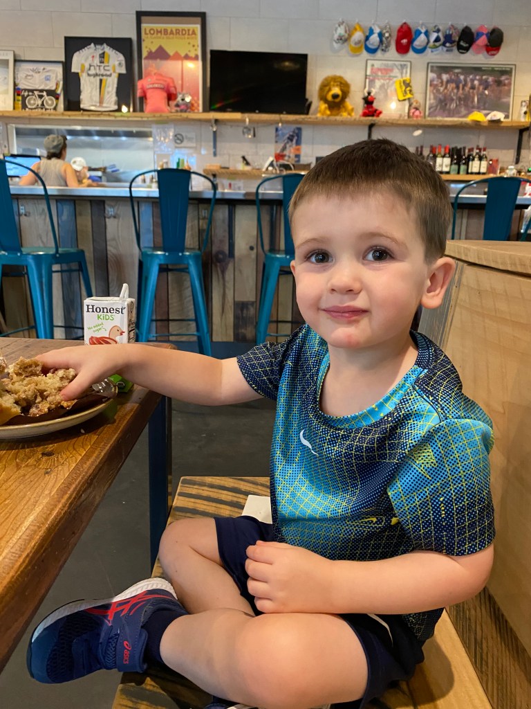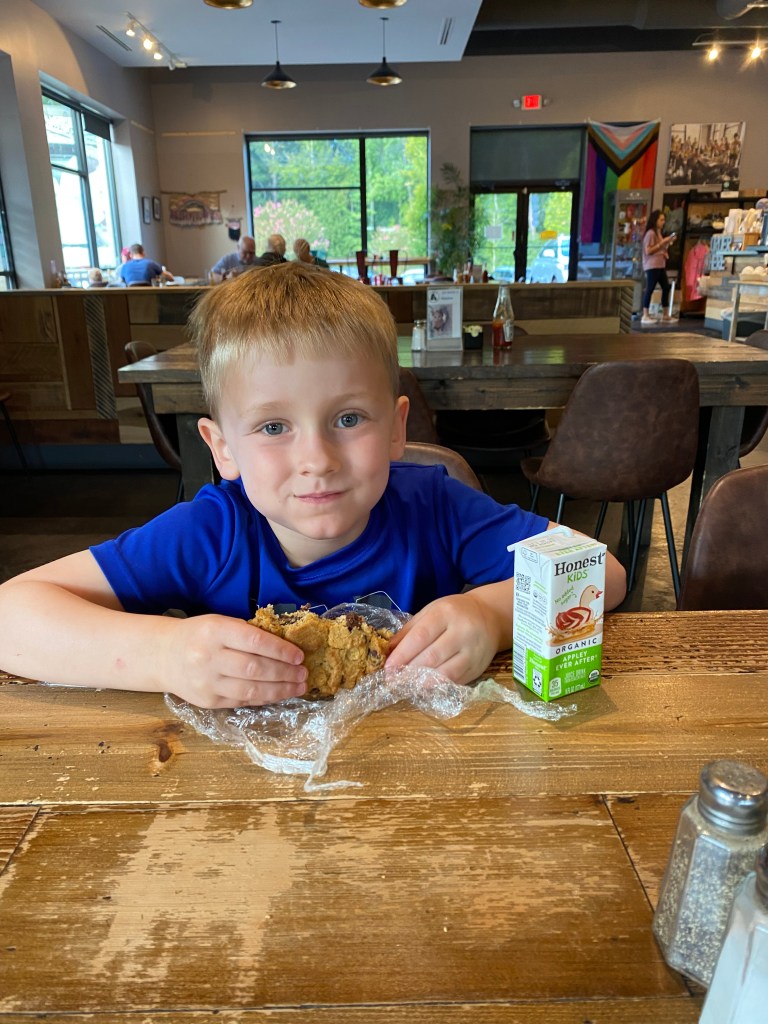 I’m relieved when we walk Baker up to his school, on time, and then head out for breakfast at one of their favorite restaurants. Parks knows the routine and goes over to pick out a juice box while I order his kid’s breakfast. He makes quick work of eating his pancake and scrambled egg