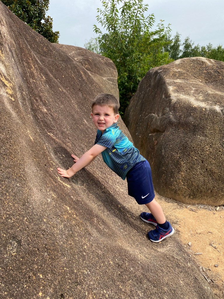 Later, he chooses to spend his morning with Grammy playing soccer at the park and climbing the “Big Rock.”