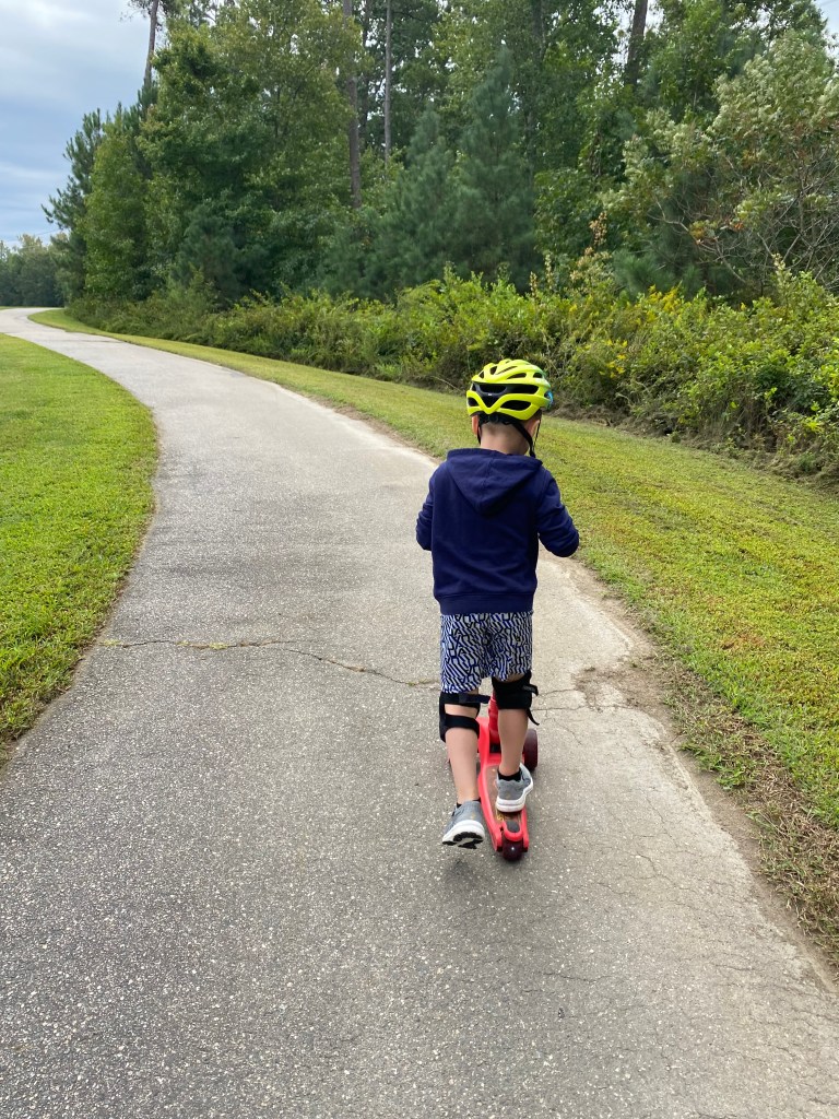 When we returned home, he wanted to ride his scooter. I hadn’t been on the paths he took but he insisted, “I know the way, Grammy.” He was skilled, going up and down the hills in areas of the neighborhood that were new to me since I’d strolled him there two years ago.