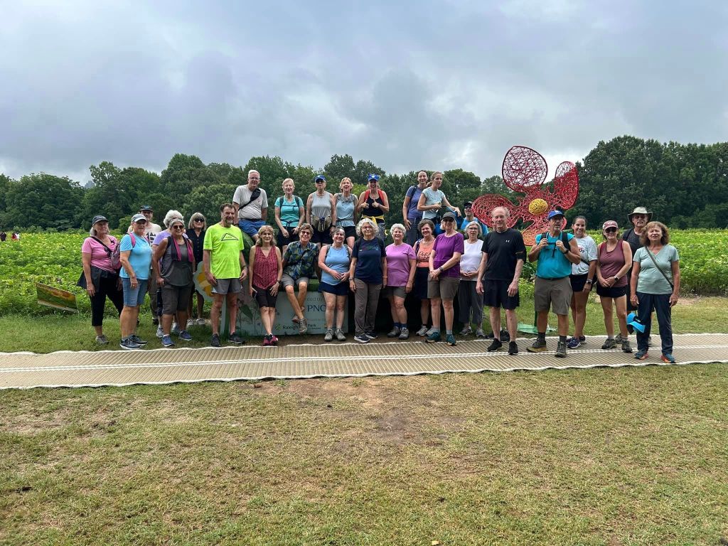 Yesterday I met with my “tribe” of members of the Raleigh Chapter of American Pilgrims on the Camino https://www.facebook.com/groups/199622577531678/. Thirty of us took the annual five-mile sunflower walk at the Dorothea Dix Park. This is the third time I’ve done a Saturday hike with the group and each time I’ve met different people; every time they’ve been welcoming and given me so much helpful information about walking the Camino.
