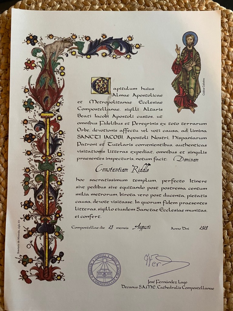 My volunteer completed my Compostela, my official document and showed it to me.