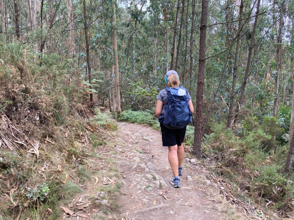 It was my eighth day of walking and I’d need to cover 16 miles starting in Oia and ending at my night’s lodging in Ramallosa, Spain. When I was preparing to leave my room in Oia, I felt restless, out of sorts, and my doubting voice asked, “Can I do it another day?” I’d looked over the description of the route along the coast and then “climbing” into the forest. In spite of a good night’s sleep, my body was tired and my spirit, tested. The anticipation of climbing hills in a forest, not to mention all the climbing of cobblestone streets in the villages, seemed daunting.