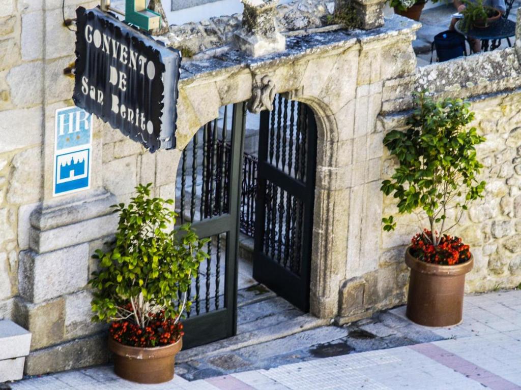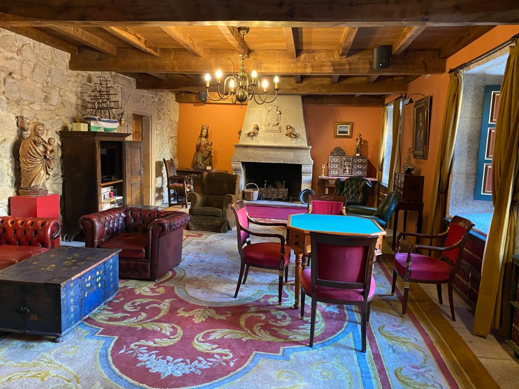 On my Camino journey, the lodging I enjoyed the most was my first night in Spain. I’d taken the water taxi out of Portugal across the Minho River at Caminha and finished my eight miles that day in the town of A Guarda, Spain. I stopped at a cafe for tea and a slice of fresh cheesecake– a welcomed snack after a hot and strenuous day. When I looked at the map, I saw my hotel was nearby. Walking out of the cafe, church bells were ringing from down the street where that church was behind the restored convent where I was staying–the Hotel Monument Convent de San Benito.