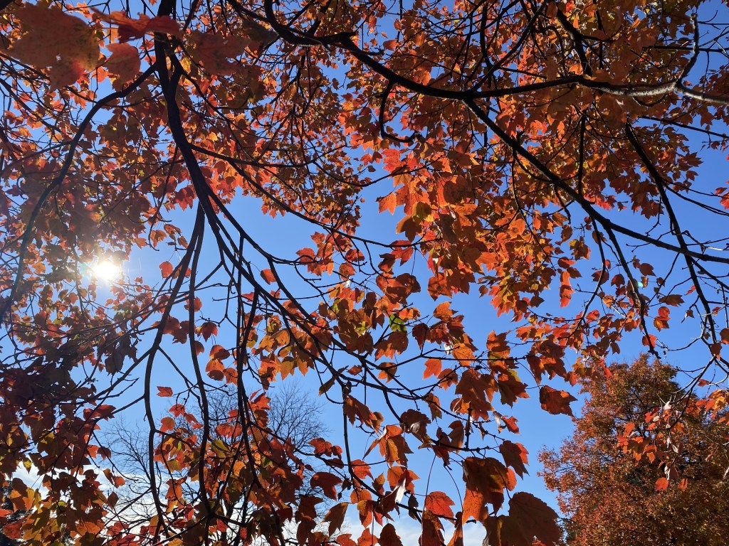 Yesterday, I took a walk before I started my Thanksgiving meal prep. There were still enough leaves on the trees to provide color for my holiday table. Walking my familiar route, I went through my morning prayers for my family and friends and thought of how things had changed since last Thanksgiving. Before my walk, I’d read this in my devotional Jesus Listens by Sarah Young: