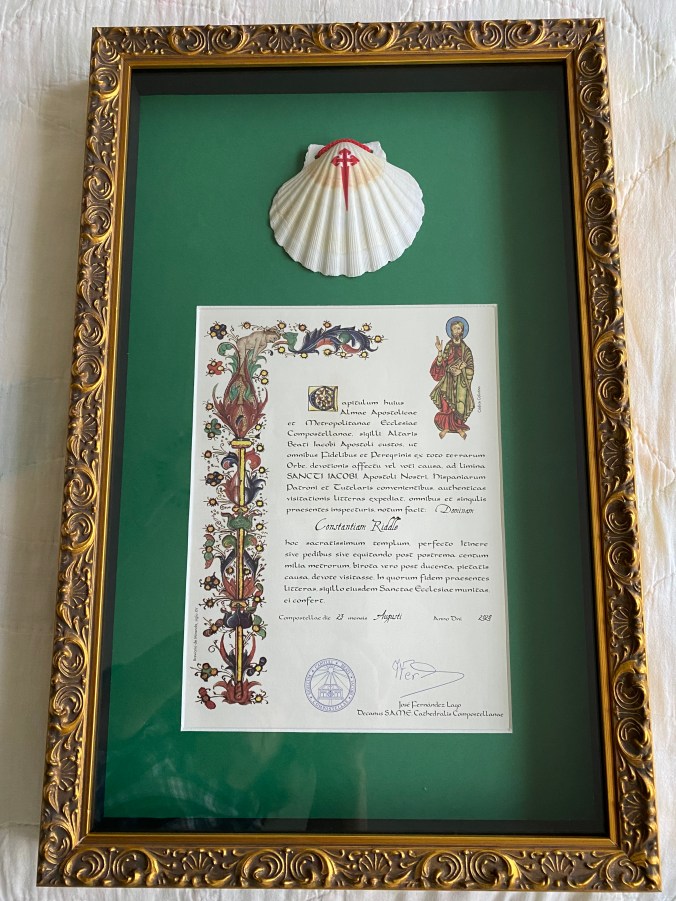 After my time of basking in that celebration, that accomplishment of my dream, I obtained my Compostela, my certificate for completing the Camino de Santiago pilgrimage. Now, it hangs above my writing desk and I remember all those days of walking by faith, not by sight.