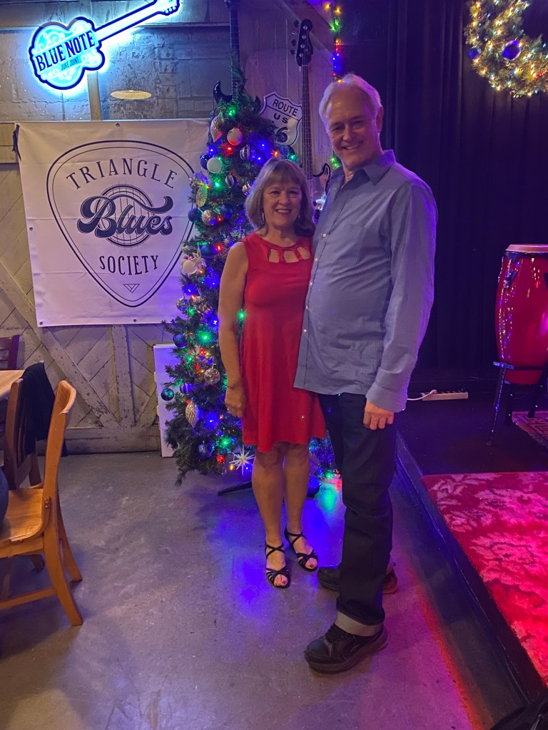 Finally, in November of ’23, I met Chris at the Blues Jam at the Blue Note Grill. He was interesting, handsome, and it was fun dancing with him. I just thought I was meeting a new friend in that Blues Community and expected we would have fun dancing and that would be the extent of it. But over time, I came to see that there was so much more to our relationship. Now, it’s been two years as a couple and I’m celebrating Valentine’s with him.